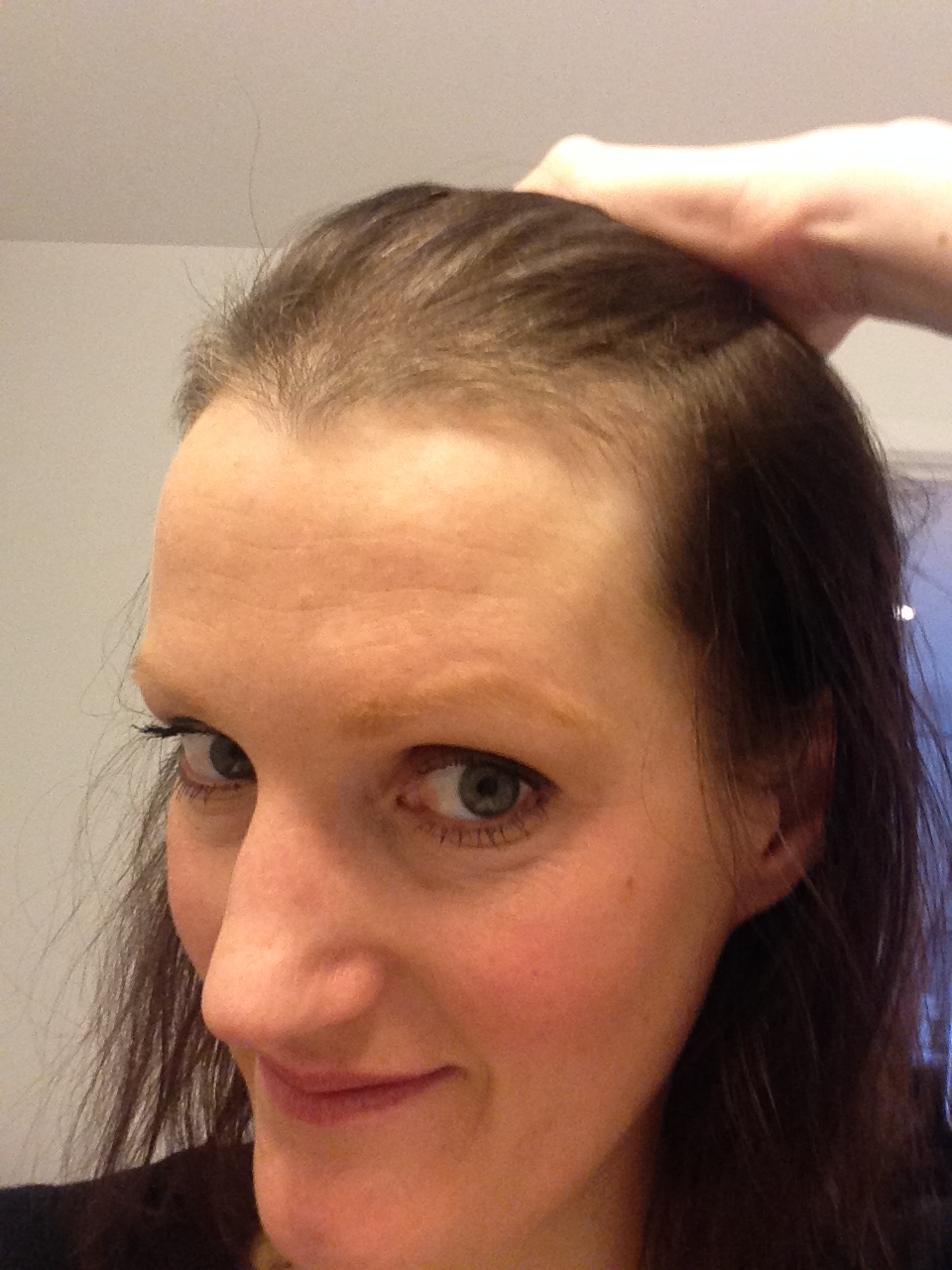 Vel, jeg ble ikke skallet. Det var bare veldig mye hår som skulle falle av på veldig kort tid. Og det kommer jo tilbake og, med dette sjarmerende resultatet: