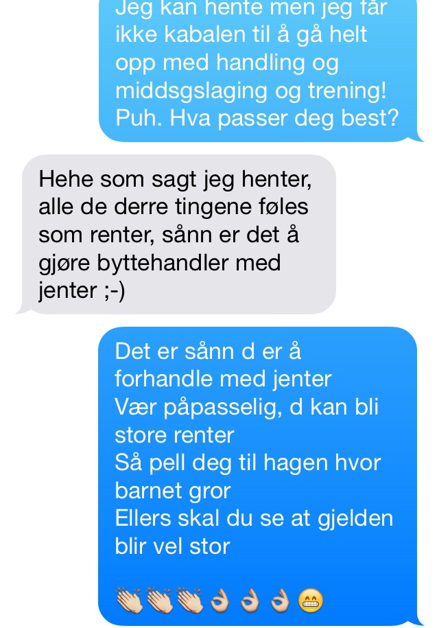 bilde 2bilde 3Trodde du vi var ferdige nå? Neida, mammaen innså at hun ikke kom til å rekke å jogge hjem fra jobb, vi skulle ha gjester og alt så det var ingen sjanse i havet faktisk, og da kunne hun jo like gjerne være litt grei likevel da. Hun var jo også blitt mør, blid og ganske så forelsket av de søte diktene. Så hun gjorde han glad: