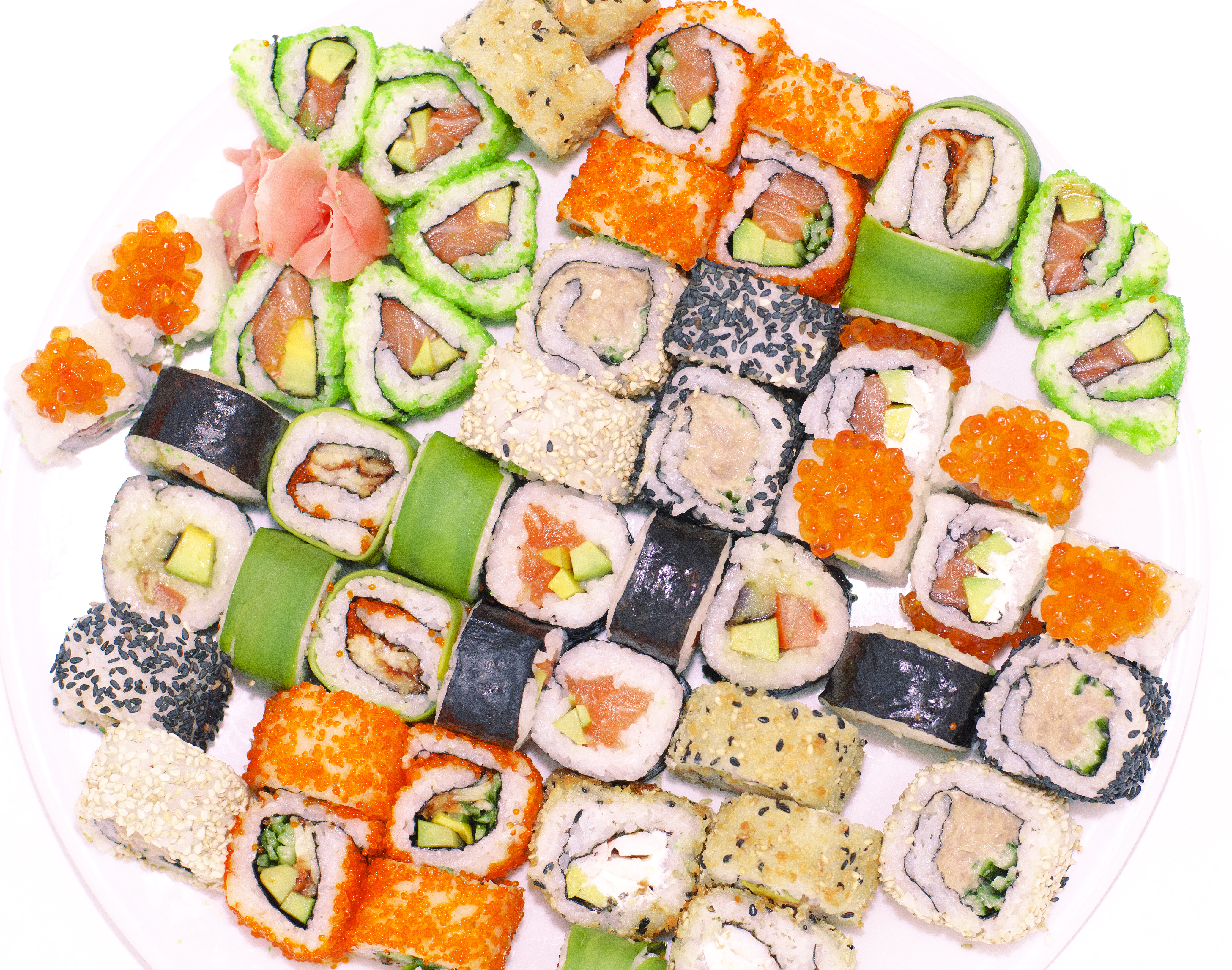 • Bortsett fra mandler og nøtter kan man fråtse i disse supersunne og næringsrike matvarene: avokado (lag guacamole), banan (annen frukt og for så vidt, men det er ofte lite kaloritett), majones, peanøttsmør (sånn som bare inneholder peanøtter og litt salt), kikerter (hummus er supergodt til grønnsakpsdip eller som pålegg), bønner, linser, oliven/rapsolje, pesto, grovt brød, fisk (særlig fete slag som makrell, laks og ørret), sushi (vet den går under fisk, men yay(!), så mye sushi du vil ha!), og ikke minst: masse deilig mørk sjokolade. Det er kjempesunt!